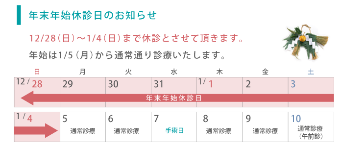 12/6(土)は代診医師による診療となります。よろしくお願い致します。